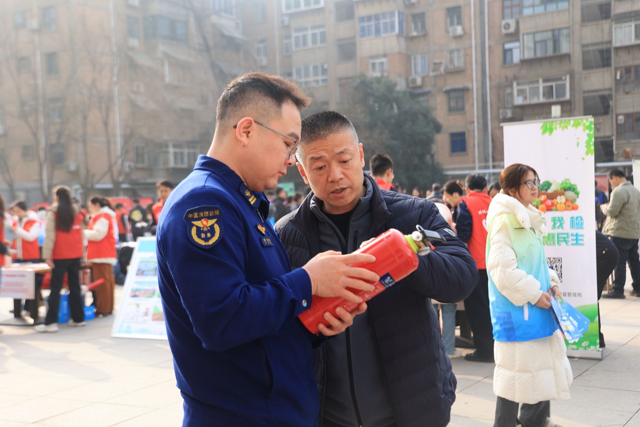 志愿者联合金花北路消防救援站,通过专业讲解、消防宣传文创互动等形式,向社区居民普及防火知识与消防器材使用方法,营造了良好的安全宣传氛围。